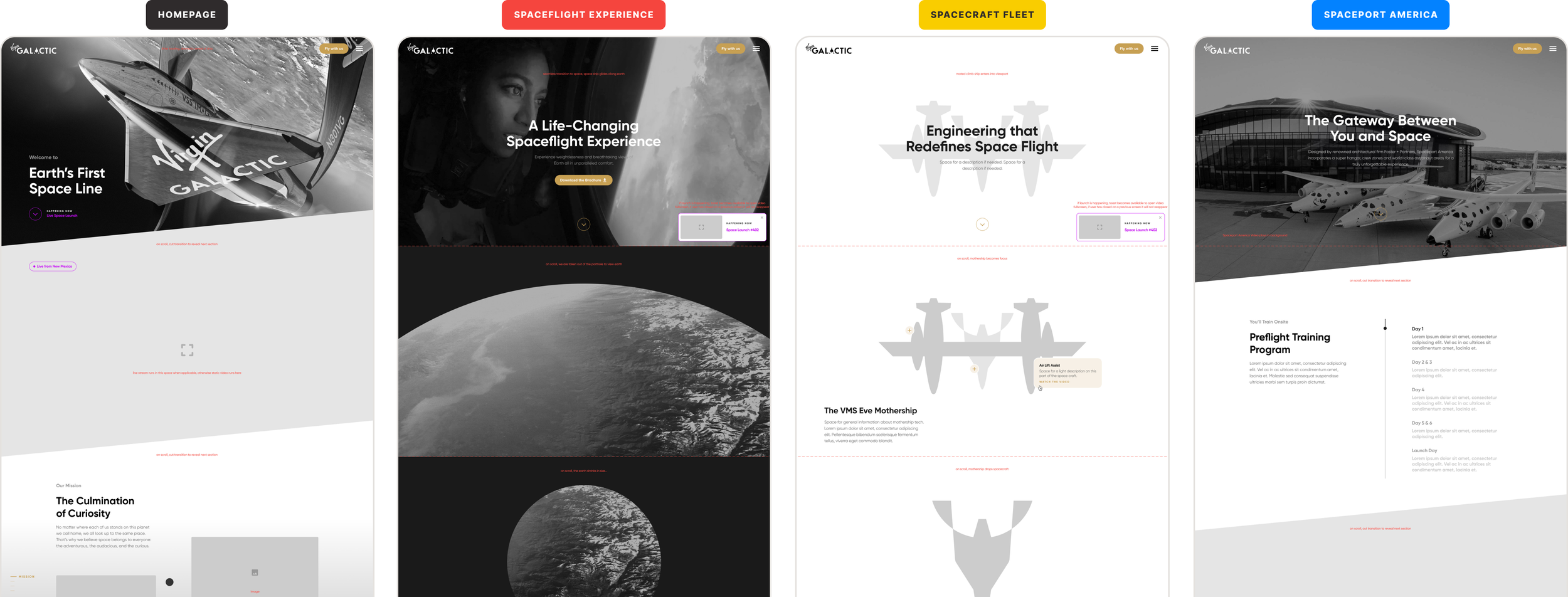 Redesign Virgin Galactic’s website to bring a more immersive, interactive, and informative experience while helping the company funnel better leads and engage with the community of users interested in Virgin’s amazing space journey.